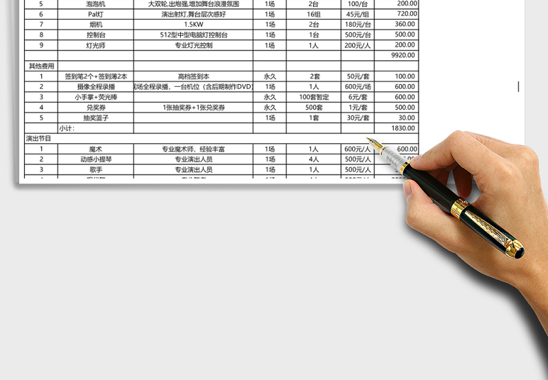 表格大全网提供年会表演及晚宴费用预算下载模板供会员下载,作品格式为xlsx。更多精彩仓库素材,尽在表格大全网。