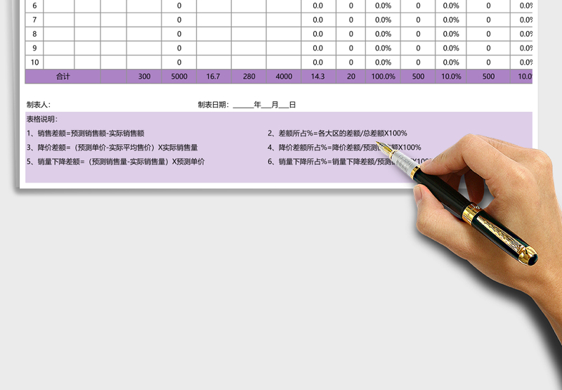 6、销量下降所占%=销量下降差额/预测销售额X100%