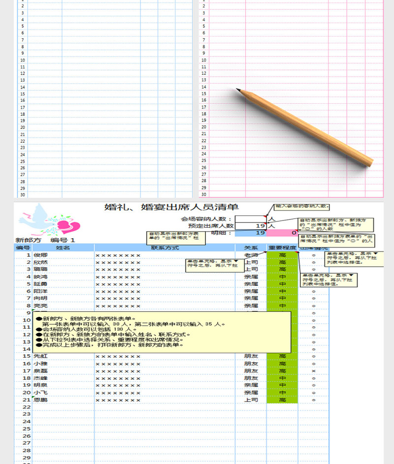 表格大全网提供婚礼宾客管理系统下载Excel管理系统下载模板供会员下载,作品格式为xls。更多精彩行政素材,尽在表格大全网。