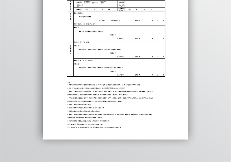 1.本表是符合条件的家庭经济困难的普通高校学生,在户籍所在地申请生源地信用助学贷款的申请表。申请学生须如实填写各类信息。