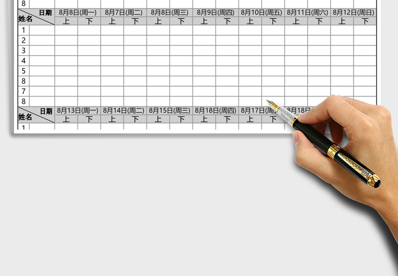 八月份考勤表( 78月 1 日 — 8月 31日)