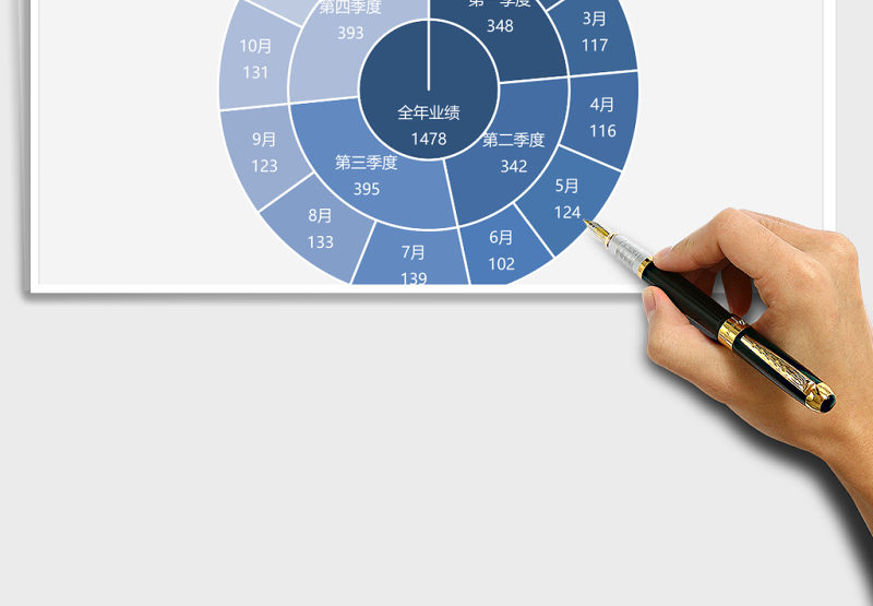 表格大全网提供精选月度季度年度销售业绩数据占比环形图excel模板供会员下载,作品格式为xlsx。更多精彩销售/采购素材,尽在表格大全网。