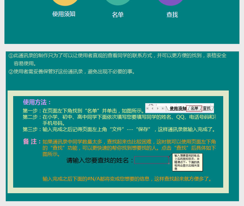 ②使用者需妥善保管好这份通讯录,避免出现不必要的事。
