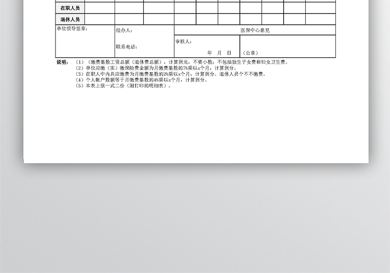 标签:医疗保险缴费核定表,1920x1080:0DPI,EXCEL文档,下载,EXCEL白色,免费模板EXCEL格式,公司文档,文件,合同,打印合同,电子文档,EXCEL模板,商务,商务文档,简洁大方,可编辑文档,,,,医疗保险缴费