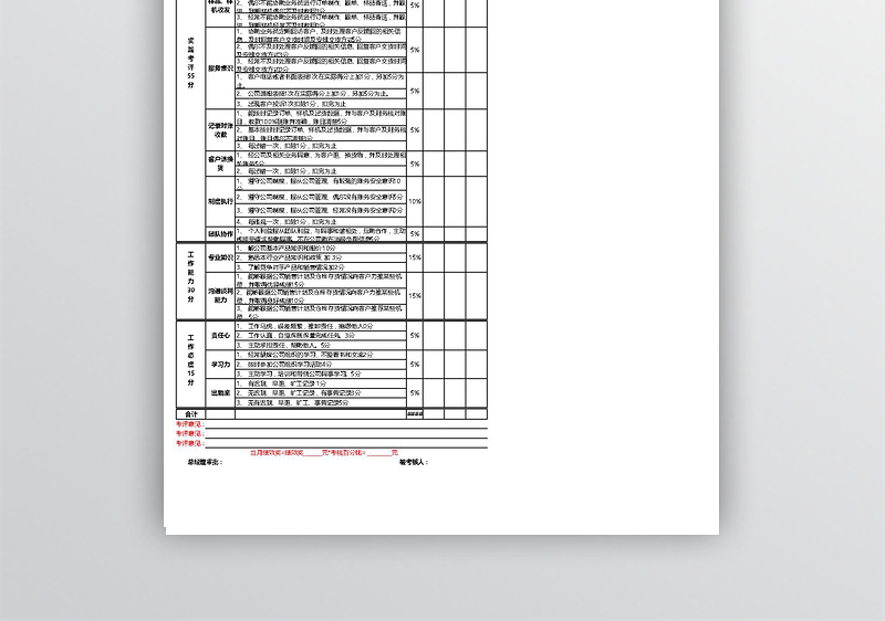 标签:商务助理月度绩效考核表,1920x1080:0DPI,公司专用,EXCEL表格,小清新风格,简单背景,内容为可修改编辑,简洁风格,A4打印文档,表格文件