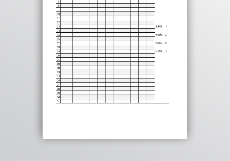 标签:简洁学生考勤表模板,1920x1080:0DPI,EXCEL文档,下载,EXCEL白色,免费模板EXCEL格式,公司文档,文件,合同,打印合同,电子文档,EXCEL模板,商务,商务文档,简洁大方,可编辑文档,,考勤表