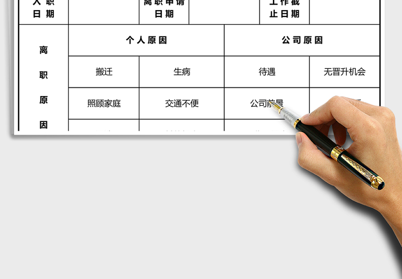 员工辞职申请单人事工作表excel模板模板供会员下载,作品格式为xlsx。更多精彩人事素材,尽在表格大全网。