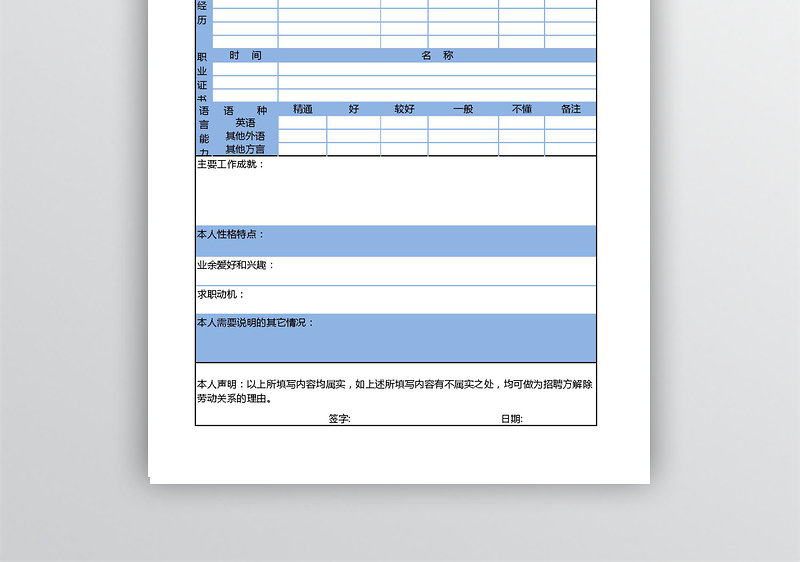 表格大全网提供简洁蓝色应聘人员登记表模板供会员下载,作品格式为。更多精彩登记表素材,尽在表格大全网。