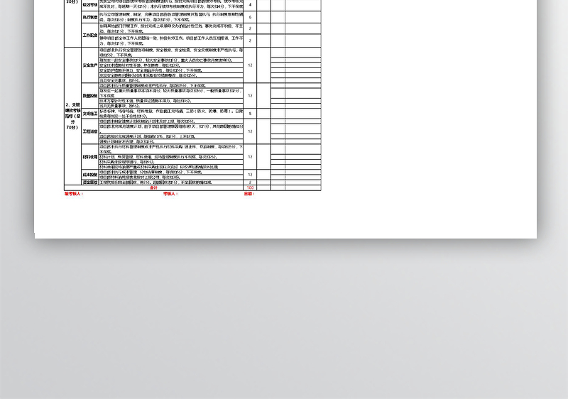 负责公司对项目部绩效考核管理制度的执行,按时完成项目部的绩效考核。绩效考核完成不及时,每延期一天扣1分;未执行绩效考核制度或执行不力,每次扣4分,下不保底。