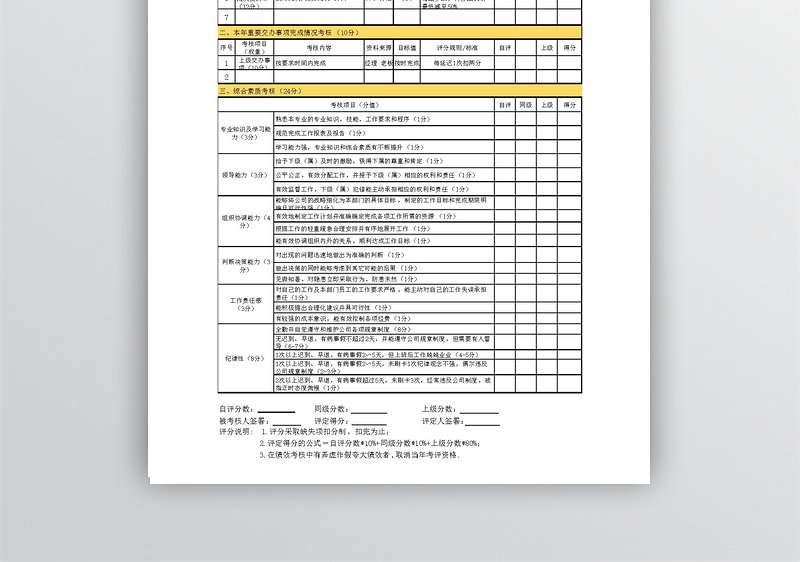 2.评定得分的公式=自评分数*10%+同级分数*10%+上级分数*80%;