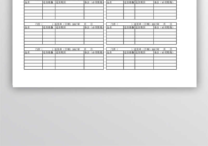 表格大全网提供门店退货单Excel工作表模板供会员下载,作品格式为。更多精彩仓库素材,尽在表格大全网。