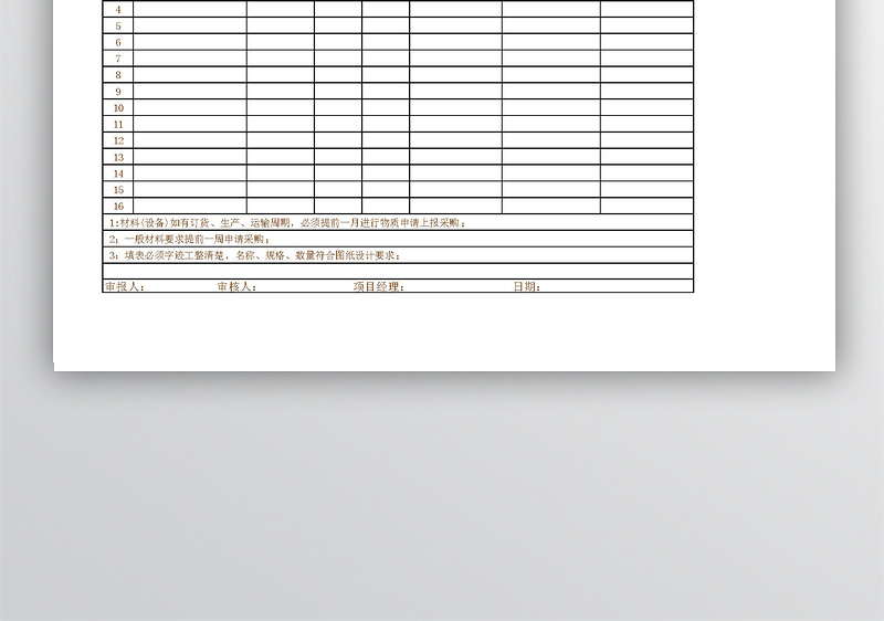 1:材料(设备)如有订货、生产、运输周期,必须提前一月进行物质申请上报采购;