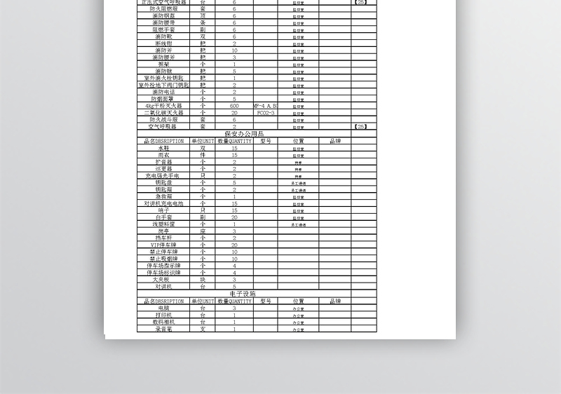 保安部物品采购表