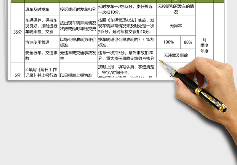 按照《车辆管理办法》实施,发现车辆异常情况未及时处理一次扣5分,延时年检交费扣10分。
