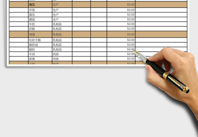 工程 > 食品购物清单excel表格excel模板.XLSX