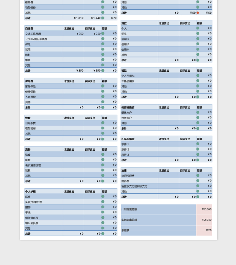 个人月度预算表excel表格下载表格模板