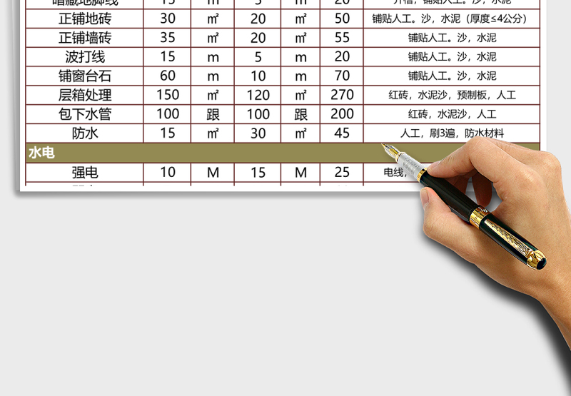 表格大全网提供装修人工及材料报价参考excel模板模板供会员下载,作品格式为xls。更多精彩仓库素材,尽在表格大全网。
