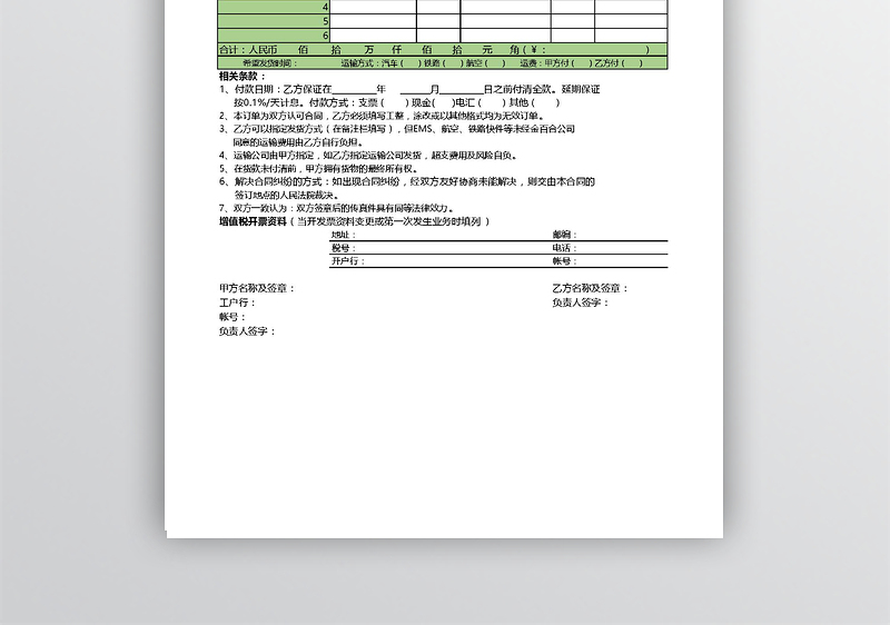 2、本订单为双方认可合同,乙方必须填写工整,涂改或以其他格式均为无效订单。