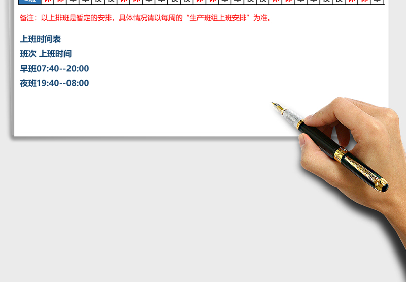 备注:以上排班是暂定的安排,具体情况请以每周的“生产班组上班安排”为准。