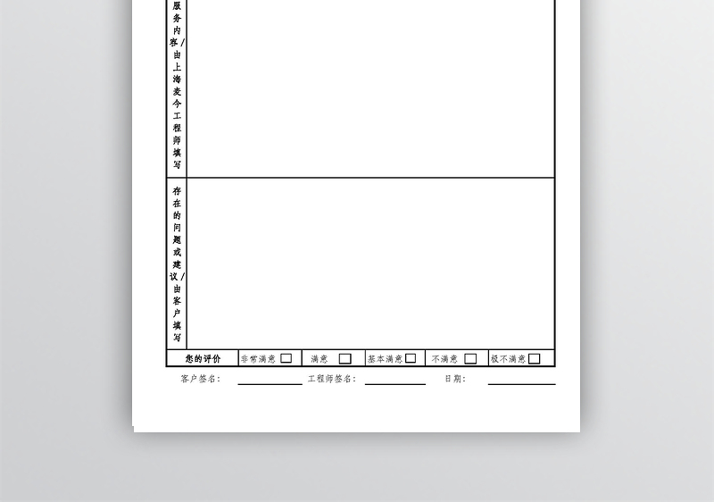 表格大全网提供技术服务意见反馈表模板供会员下载,作品格式为。更多精彩运营/客服素材,尽在表格大全网。