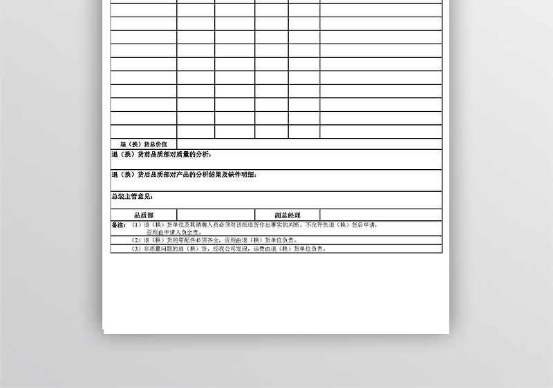 备注:(1)退(换)货单位及其销售人员必须对该批退货作出事实的判断,不允许先退(换)货后申请, 否则由申请人负全责。