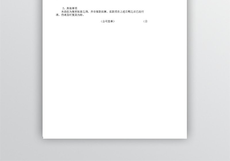 本函仅为复核账目之用,并非催款结算,若款项在上述日期之后已经付清,仍请及时复函为盼。