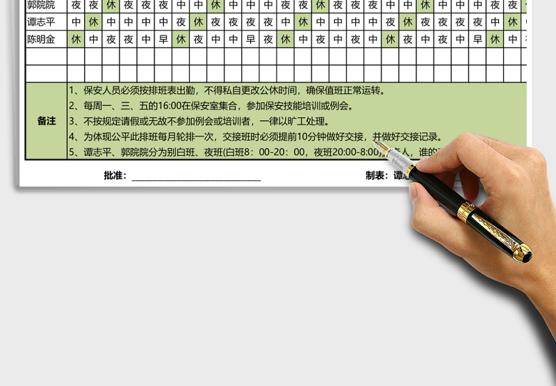 表格大全网提供公司保安排班表格模板供会员下载,作品格式为xlsx。更多精彩人事素材,尽在表格大全网。