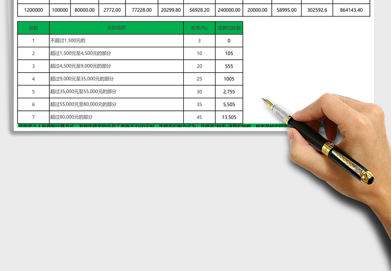 年终奖个人所得税计算方式:发放年终奖的当月工资高于3500元时,年终奖扣税方式为:年终奖*税率-速算扣除数,税率是按年终奖/12作为“应纳税所得额”对应的税率。