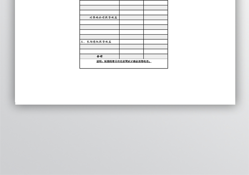 标签:公司投资收益明细表,高清图片设计素材,1920x1080:0DPI,投资收益明细,,短期投资收益,,长期股权投资收益,,长期债权投资收益,,,合计