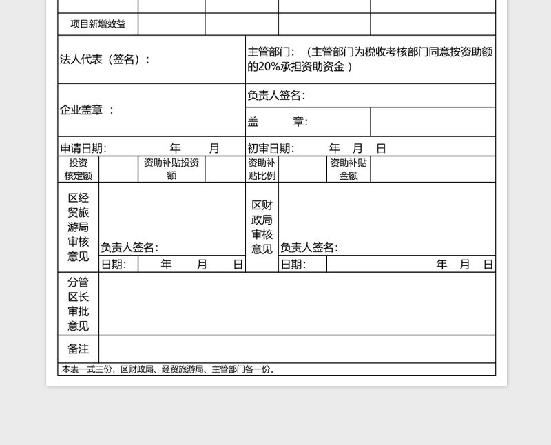 本表一式三份,区财政局、经贸旅游局、主管部门各一份。