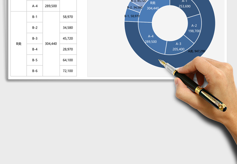> 商品分类销售明细统计环形饼形图excel模板.XLSX