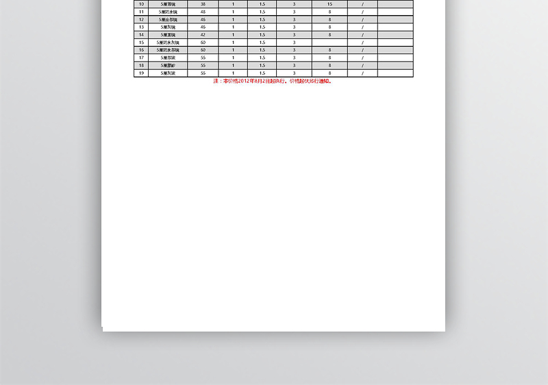 注:本价格2012年8月2日起执行。价格起伏另行通知。