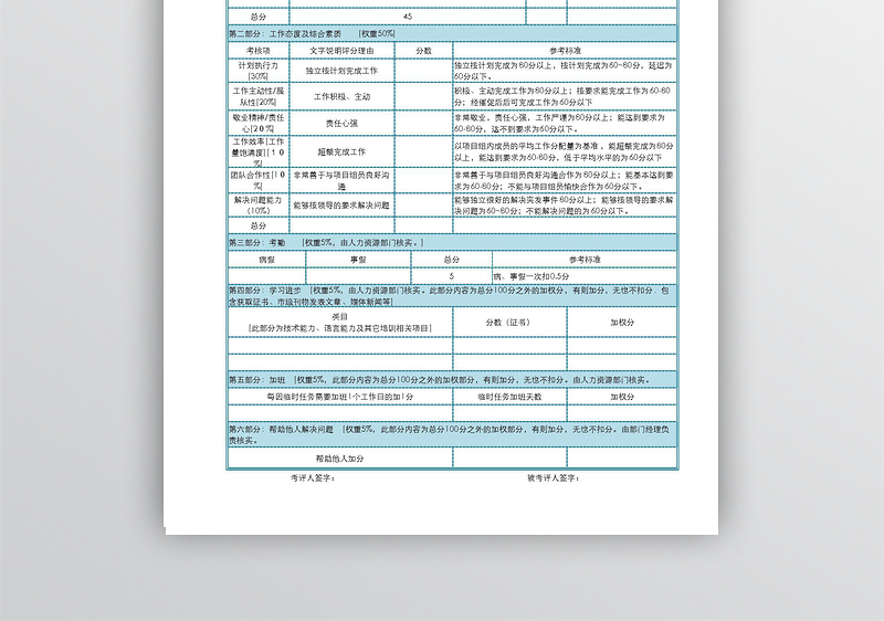 第三部分:考勤 (权重5%,由人力资源部门核实。)